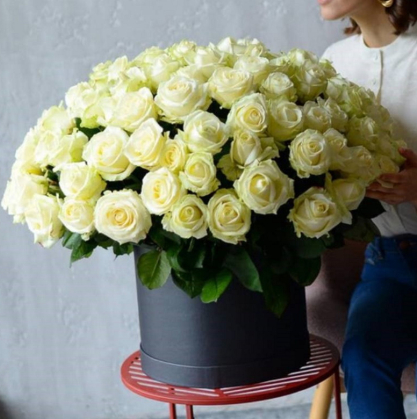 101 белая роза в коробке