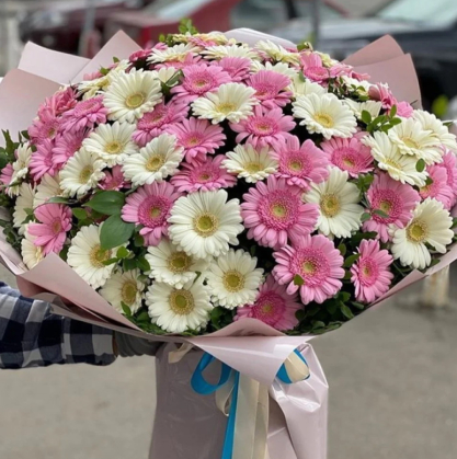 Букет из 101 белой и розовой герберой | Купить в Чехове