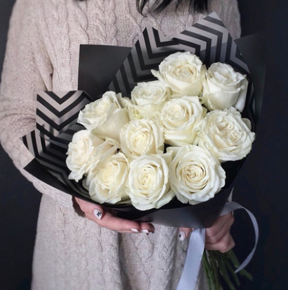 Букет белых роз в упаковке | Доставка цветов в Чехове