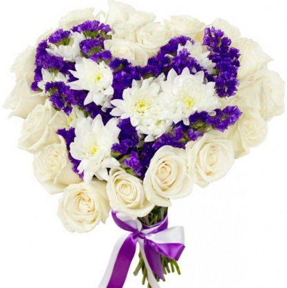 Букет сердцем из роз, хризантем и статицы | Купить в Чехове