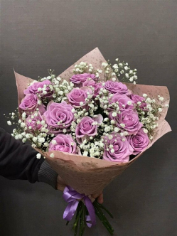 Фиолетовые розы с гипсофилой